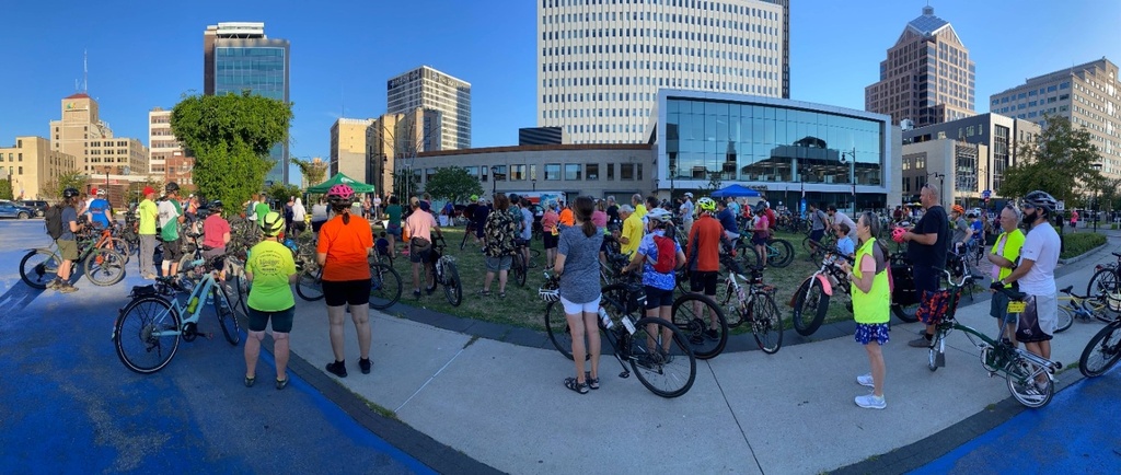 You showed up to ride to Parcel 5 to call on New York State officials to keep us safe on state roads and since then we’ve been busy continuing this advocacy. For those of you who couldn’t attend, the NYS Department of Transportation sent this statement for us to read at the event, which unfortunately didn’t give them the opportunity to see the mass of cyclists who came out to push for safer state roads. Since the event, 311 people signed a letter calling on start officials to invest in safe state road infrastructure for people walking and biking and taking transit! Behind the scenes, we’ve continued to advocate for multimodal changes to Empire Boulevard, Monroe Avenue, West Henrietta Rd. and Lake Avenue. Brighton’s Town Supervisor highlighted the strong prospect that Monroe Avenue would get a road diet, and with the right lane configuration, we could even get 5’ bike lanes on both sides. We need to keep encouraging this kind of thinking for the future.