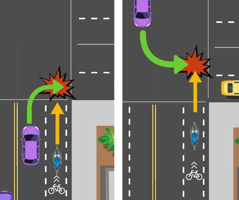 2nd Most Common MOTORIST Error – turns into cyclists going straight