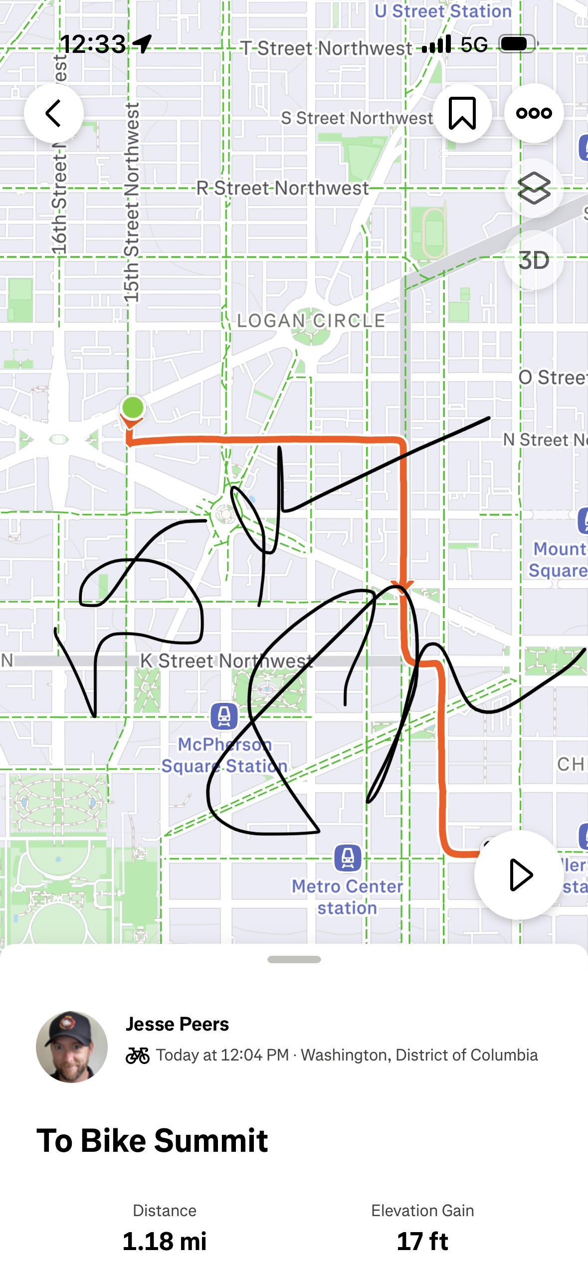 We were excited to see the remarks from Doug Gordon and Sarah Goodyear, whose work on Life After Cars and The War on Cars continues to inspire advocates to imagine people-centered streets. Naturally our cycling Manager Jesse Peers got their autograph on his Strava route screen shot.